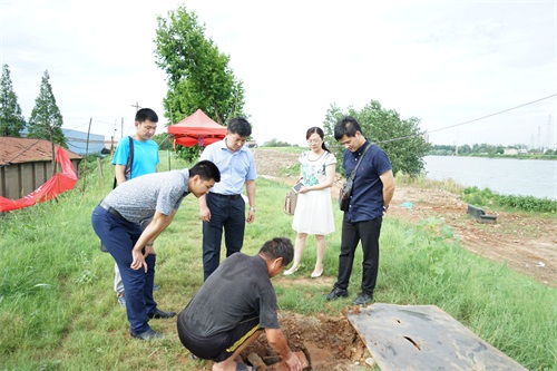 下午三点,室外温度直逼35摄氏度,江堤地面温度则更高。熊治一行抵达谌家矶防汛地点,在防汛工作者的带领下,查看了谌家矶抗洪防汛实况。谌家矶仓库管理员陈泽元师傅为公司领导详细介绍了各方面的工作情况及其自创的防汛排水小窍门,受到一行领导的肯定和赞许。