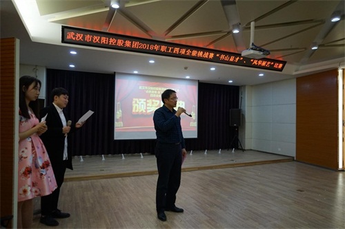由武汉市金年会控股集团有限公司工会委员会举办的系列活动“职工四项全能挑战赛”之“书山显才”与“风华展艺”比赛于11月30日下午在金龙公馆11楼大会议室隆重举办。本次活动前后历时4个月,此时迎来“收官之战”,特邀请金年会区总工会副主席张九红与金年会控股公司领导共同见证。