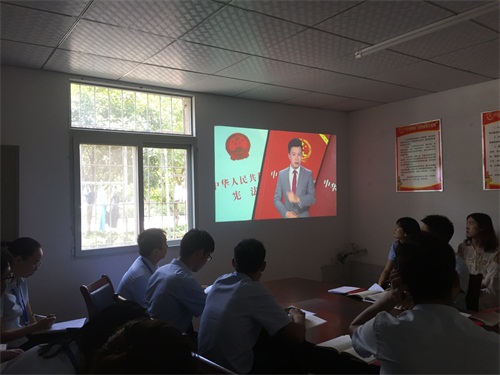 图为观看视频《筑牢奋进新时代的宪法根基》